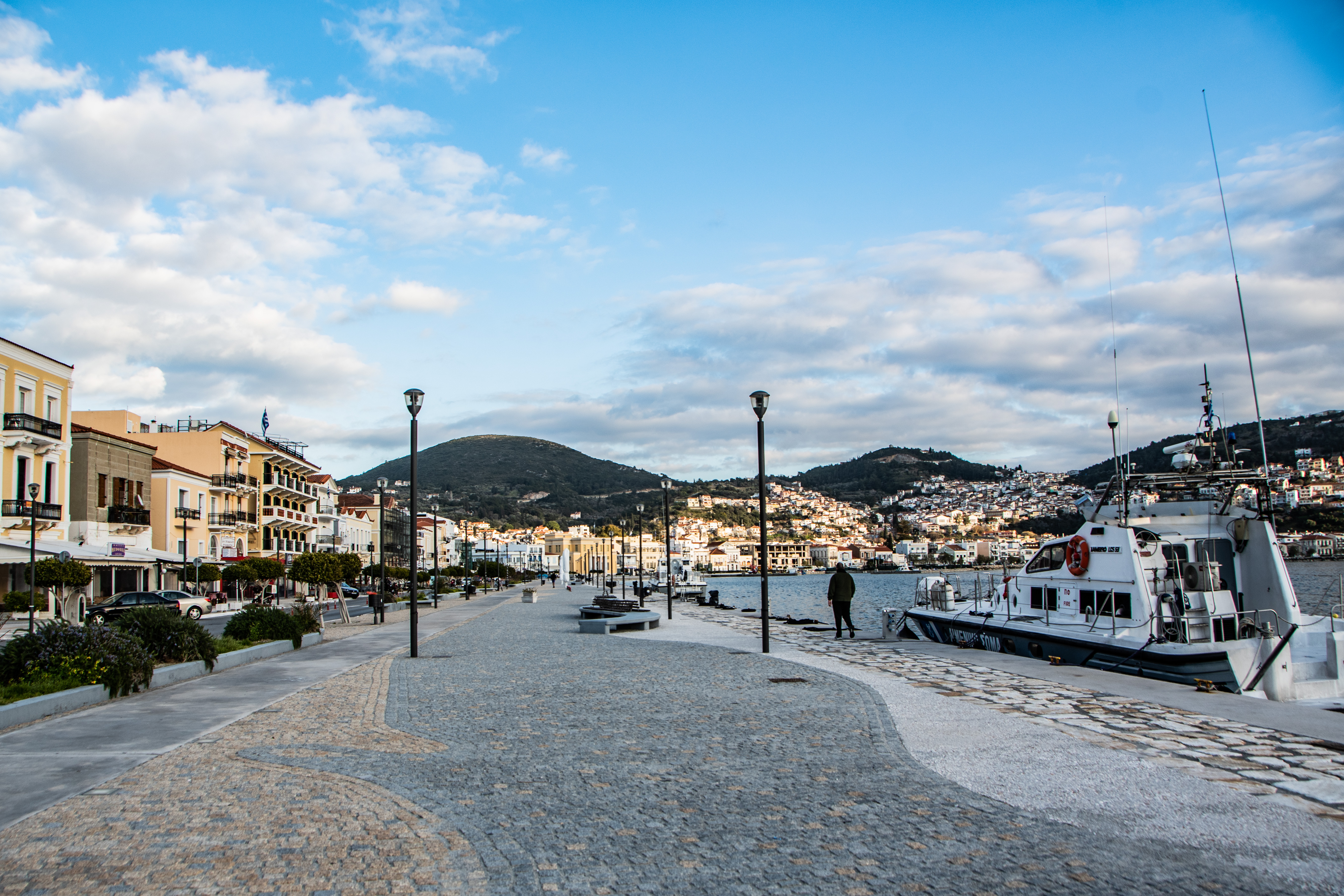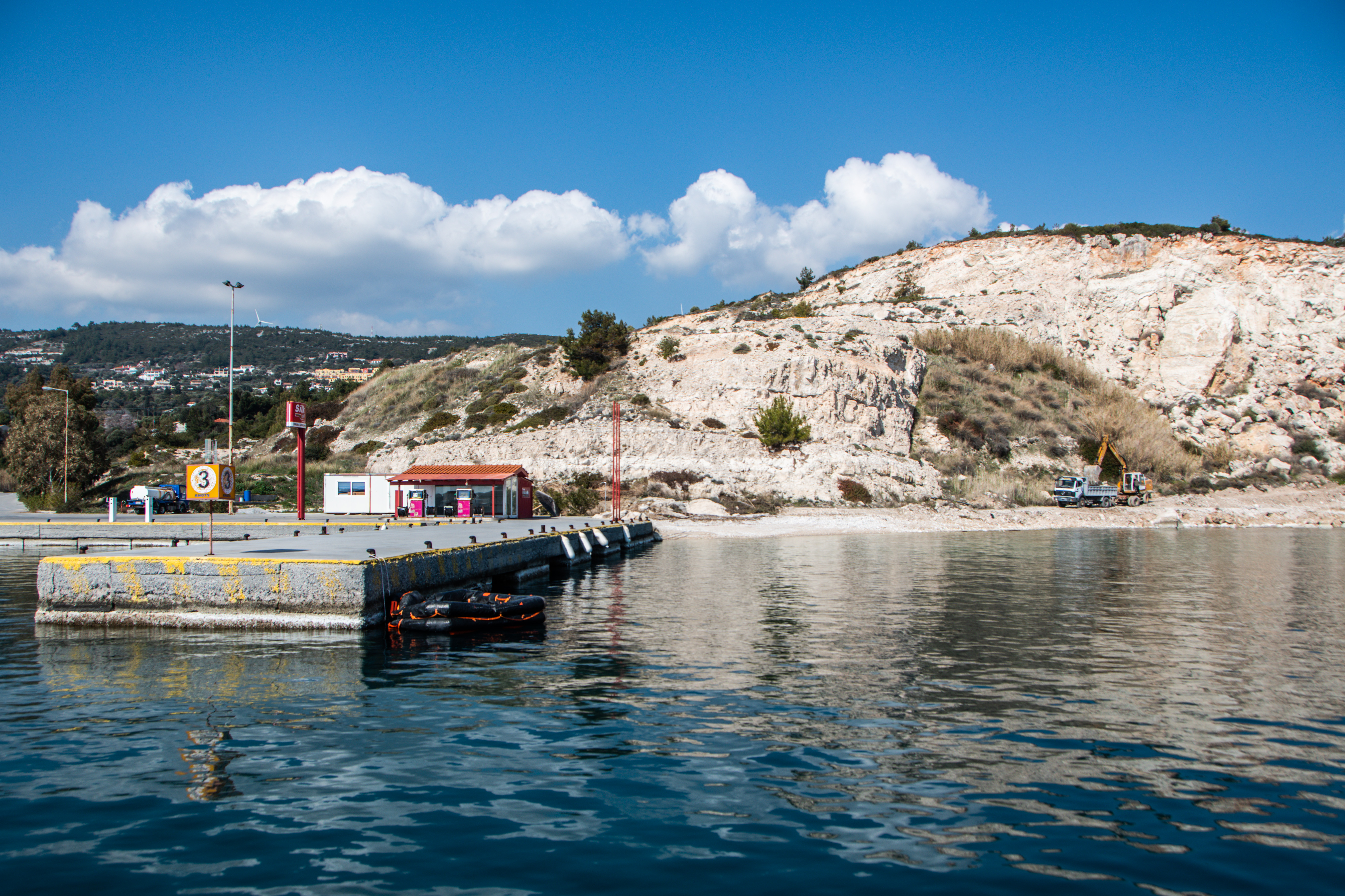 Our first walk around the neighborhood, it was hard to miss the preeminence of the Kustenwache (EU Coast Guard) taking up the docking space in the empty winter harbor. It is common knowledge that these boats are here for the sole reason to watch for refugees coming from Turkey by way of dinghy boats, their job being to prevent these boats from landing on European soil. Because once people do set foot on land, then they are able to find refuge in the camps that are set up on the island and receive the many humanitarian services that are available to them by both the government and non-governmental organizations on the islands and in Europe at large. It’s a difficult situation that the EU does not have a clear way on how to handle and has a plethora of political and personal opinions attached to it. I am simply here to express what I saw in my time in Greece and communicate the perspective I was given from the people I met and talked to.